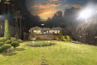 Участок окружён реликтовыми соснами и оформлен профессиональным ландшафтным дизайном. На территории расположен собственный теннисный корт и уютная закрытая беседка для отдыха.