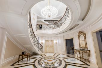 1 этаж: холл, кабинет, гардеробная, гостиная с камином, малая гостиная, столовая, кухня, санузел, гостевая спальня с санузлом, спа-зона с бассейном, сауна, хаммам, комната отдыха с мини-кухней;