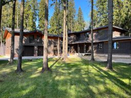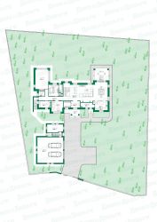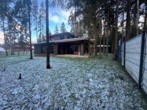 Участок расположен на тихой тупиковой улице, на границе с лесным массивом. На территории самого участка растёт много огромных хвойных деревьев.