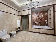 Новый модный дом с лифтом в коттеджном поселке Лион (Чигасово) общей площадью 960 м2 на участке 27 соток. Планировками дома предусмотрены: 1 этаж: большой каминный зал -гостиная со вторым светом и панорамным остеклением, украшенный большим камином из натурального мрамора; кухня-столовая с техникой LIEBHERR и KUPPERSBUSCH, кабинет, прихожая, холл с мозаикой, гостевой санузел, большая гардеробная , постирочная, котельная с 4-мя котлами Buderus, переход в спа -зону и спортивный комплекс. На втором этаже расположены : мастер -спальня с просторной гардеробной и санузлом, украшенным мозаикой, с ванной и душевой, 2 детские спальни -каждая с просторной гардеробной и собственным санузлом. Спа-зона и спортивный комплекс включают : бассейн 12 метров с противотоком и водопадом, хаммам, душевые, спортивный зал с тренажерами и станком, массажная комната, гостевая комната, санузел, вторая кухня. Под бассейном расположены технические помещения для обслуживания. В доме установлены приточно-вытяжная вентиляция и кондиционирование, лифт, на полах натуральный паркет, мозаика и плитка из натурального мрамора; подоконники также из натурального мрамора; на потолках настоящая лепнина, сделанная по индивидуальному эскизу; люстры и мебель привезены из Италии , в санузлах уникальная мозаика, мрамор и итальянская сантехника. Также на участке расположен просторный гостевой дом в охотничьем стиле с настоящей печью на просторной летней террасе, от декорированной массивными деревянными балками, и несколькими гостевыми спальнями внутри. На участке выполнен красивый ландшафтный дизайн с крупномерами , декоративными кустарниками и цветами, проведено освещение, высажен газон, сделаны дорожки из плитки.