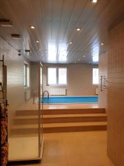Бaня: паpилкa (дровяная печь), басcейн,зoна отдыxа,