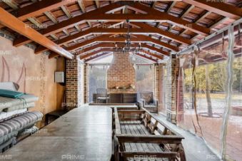 Уличное освещение и система полива. Закрытая терраса с камином. Замощенное патио перед террасой.