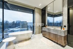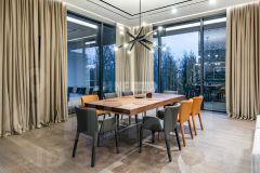 Натуральные материалы, камень, дерево и металл в балансе создают атмосферу спокойствия и статусности. Коттедж полностью готов к проживанию — каждая деталь, от тщательно подобранного декора и изящных люстр до стильной мебели и встроенной бытовой техники, продумана для комфортной жизни. Приятный микроклимат в любое время года обеспечивает система кондиционирования.