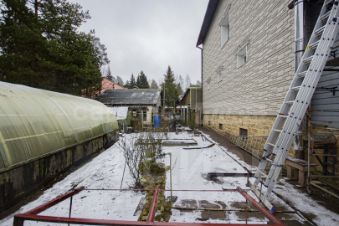 Надежные материалы: Стены из пеноблоков (80 см), прочный блочный фундамент, облицовка сайдингом, металлочерепица на крыше.