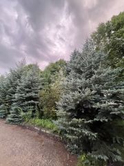 Участок благоустроен. Есть парковка на 2 машины, дорожки из брусчатки, зона барбекю рядом с террасой, рулонный газон, по периметру высажены туи, посажены ивы, березки.