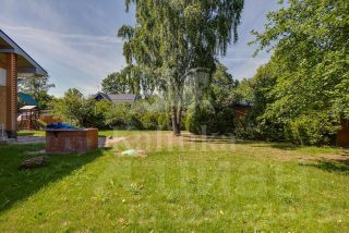 Участок правильной формы 11 соток с плодовыми и декоративными деревьями. Проведены ландшафтные работы, вымощены дорожки, высажен газон, установлены автоматические ворота и видеонаблюдение. Отдельно расположены гостевой дом, зона барбекю, гараж на 3 м/м, мойка.