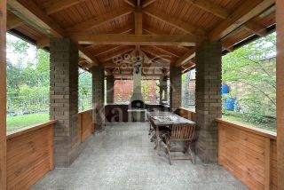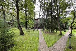 На участке проведены ландшафтные работы, высажены декоративные деревья, лесные и плодовые, организован огород, вымощены дорожки, установлено освещение. Отдельно расположены беседка с зоной барбекю, теплица, СПА-комплекс (80 м: бассейн 3х5 м. с противотоком, сауна, душевая, с/у), гараж (80 м) на 2 м/м с однокомнатной квартирой для персонала.