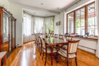 Кирпичный коттедж площадью 835 кв.м. на лесном участке в 50 соток в элитном камерном охраняемом поселке Красная Поляна. В планировке дома предусмотрены просторная гостиная с камином, изолированная кухня, 6 спален с собственными санузлами, блок для персонала. Высокие потолки, большие окна в доме много света и простора. Отдельно расположены зона барбекю и СПА-комплекс (398 кв.м.), который включает в себя бассейн с противотоком, сауну, бильярдную, гостиную с кухней и столовую.