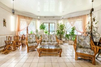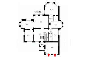 1 этаж: прихожая, гардеробная, 2 санузла, холл, гостиная с камином, столовая, кухня, гостевая спальня, зимний сад.