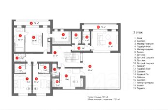 спальни для членов семьи и гостей, кабинет, полноценный