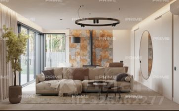Внутри дома расположены 4 просторные спальни, холл, гостиная с камином, кухня-столовая и терраса. Панорамное остекление и открытые пространства позволяют проникновению света и воздуха, создавая атмосферу свежести и простора. Каждая деталь продумана до мелочей, а использование натуральных материалов премиум качества подчеркивает изысканный характер дома.