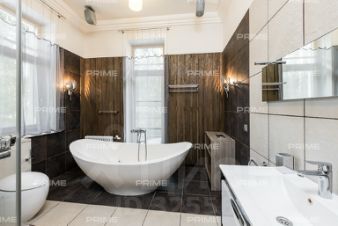 Особое внимание уделено деталям: интерьеры дополняются элементами из муранского стекла с вкраплениями золота 24 карата, что придает помещению неповторимую роскошь. В прихожей, холле и кабинете использован испанский хрусталь Swarovski, подчеркивающий блеск и элегантность интерьеров. Сантехника в доме от Antonio Lupi, где каждая деталь - это настоящее произведение искусства. В главной ванной комнате установлены раковины, выточенные из цельного камня, а в гостевом санузле первого этажа - из экзотического дерева венге.В доме также есть бассейн и хамам, что позволяет наслаждаться расслабляющим отдыхом в собственном spa-комплексе.