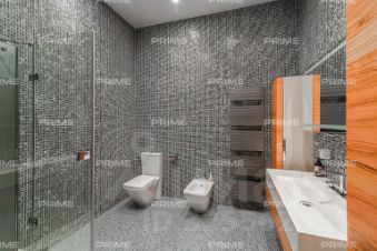 На первом этаже дома располагается холл, гардеробная, гостиная-кухня-столовая, кинотеатр, а также зона SPA с бассейном, сауной, душевыми и санузлом. Второй этаж отведен под детскую спальню с санузлом, гардеробной и кабинетом, а также спортзал. На территории участка вы найдете банный комплекс с 2-х комнатной квартирой для гостей, дом для персонала и зимнюю беседку для уютных семейных вечеров.