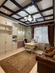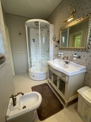 Дом кирпичный, облицован керамическим колотым кирпичом. Газовое отопление. Артезианская скважина 95 метров глубиной. Выполнен качественный ремонт по дизайн-проекту. Напольное покрытие керамическая плитка и паркетная доска, везде, где положена керамическая плитка есть регулируемый теплый пол. Все окна снаружи закрываются рольставнями ( управление открываем/закрываем изнутри дома на каждом окне). Подоконники выполнены из камня. Установлены кондиционеры и метеостанция на крыше дома. Мебель из натурального дерева, на первом этаже дорогой итальянский гарнитур и действующий дровяной камин.
