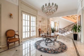 Дом с эксклюзивным дизайном и интерьером, детали которого выполнены вручную из дорогих натуральных материалов: мрамора, массива ореха и дуба. Мебель от известных мировых брендов — Francesco Molon, PROVASI, Colombostile, а люстры от фабрики MECHINI.