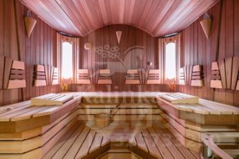 Цокольный этаж: зона SPA с кедровой сауной, санузлом, душевой, кедровой бочкой и комнатой отдыха.