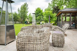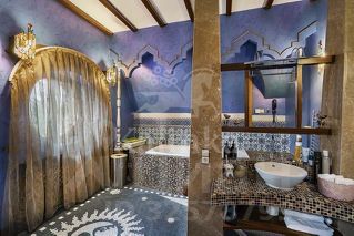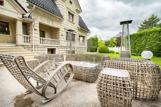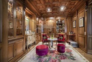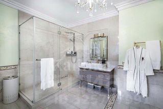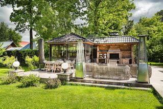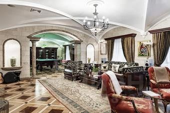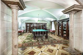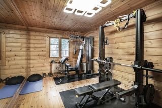 Отдельно на участке расположены: дом для охраны, закрытая беседка для барбекю, гостевой дом с тренажерным залом, спальней и санузлом, гараж на 3 машиноместа с двухкомнатной квартирой для персонала, детский игровой домик, водоем.