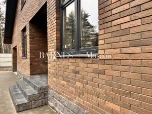 Дом построен из блоков, фасад выложен натуральным кирпичем. Толщина стен 55 см. Высота потолка в черновой 3,4 м. на первом этаже. Окна Veka двухкамерные. Установлено котельное оборудование Baxi, водоочистка. В гараже выполнен косметический ремонт.