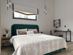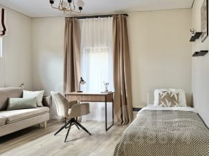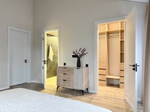 Мастер-спальня с собственной гардеробной и санузлом (высота 5.5 м) + 2 отдельные спальни + второй санузел.
