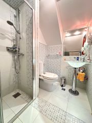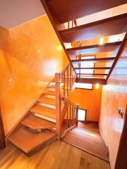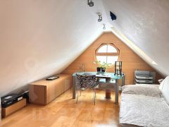 На первом этаже большая прихожая, зал с камином, с/у, кухня с обеденной зоной и выходом на внутреннюю территорию, котельная; на втором этаже было 3 спальни (сейчас сделали 2 комнаты: 1-я мастер спальня со своей гардеробной и с/у, 2-я детская изолированная спальня), плюс второй с/у; на мансардном этаже еще одна спальня, которую можно использовать как рабочий кабинет, гардеробная и с/у. Всего 3 спальни, 1 зал, 4 с/у и много мест для хранения одежды.