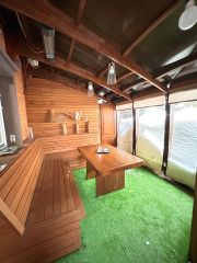 Дом оборудован своей внутренней, благоустроенной территорией, с летней верандой и баней. Перед домом есть крытые парковочные места. Территория коттеджного поселка огорожена и охраняется, проход и въезд по пропускам, так что можете быть спокойны за своих детей и имущество на территории.