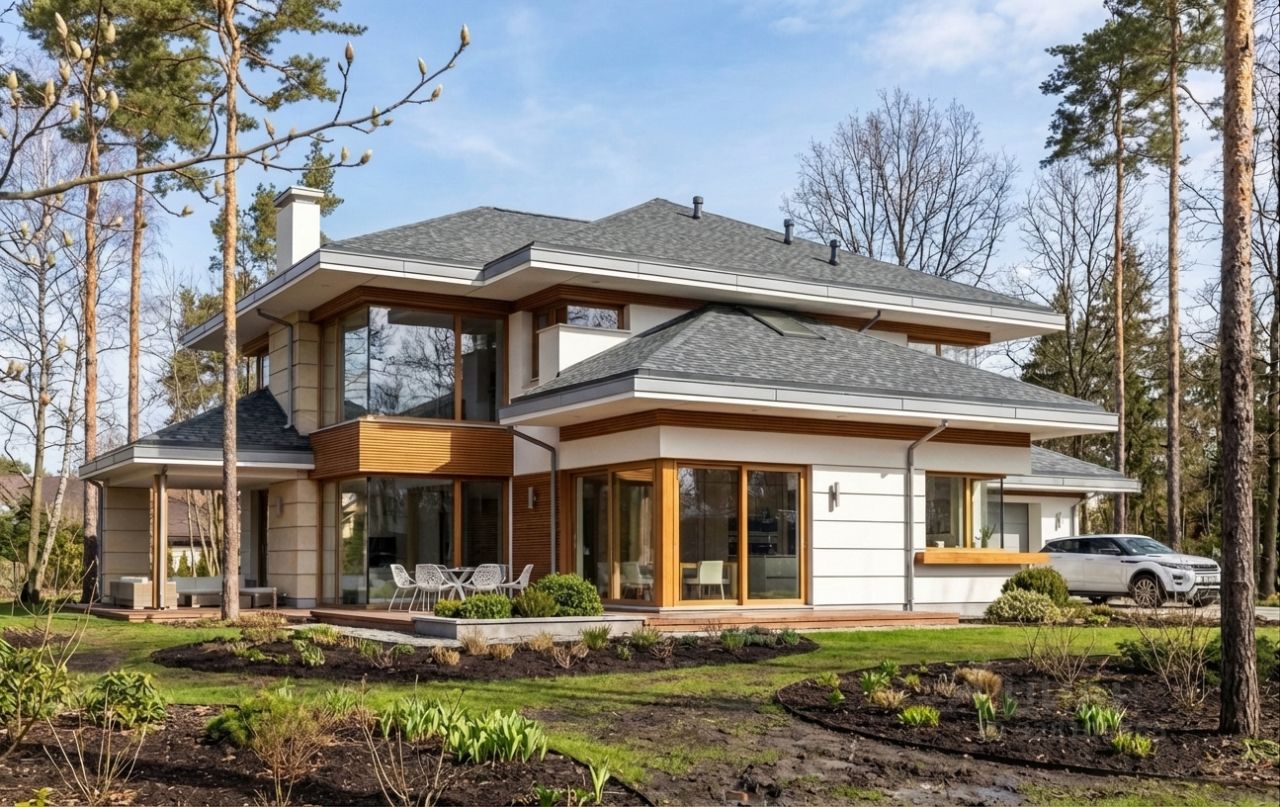 Дом расположен в известном строго охраняемом коттеджном поселке "Крекшино" в тихом зеленом районе на окраине леса, в шаговой доступности от всей необходимой инфраструктуры и в 25 минутах от центра города - данной локации нет альтернативы!!! Дом с большой верандой и гаражом на 2 авто, сдается с черновой отделкой. Мы готовы довести до "под ключ" согласно проекту или по Вашим пожеланиям. Фасад: декоративная штукатурка, планкен массива лиственницы.
