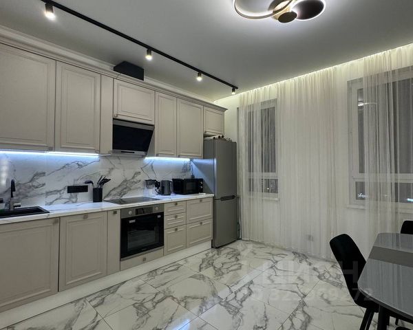 На кухне имеется вся посуда для приготовления пищи. Кухня оснащена бытовой техникой, холодильник, керамическая плита, вытяжка, духовой шкаф, микроволновая печь, чайник, столовые приборы и посуда.