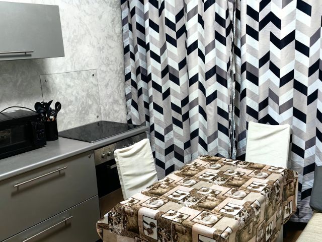 -Посуда (тарелки, кружки, сковорода, кастрюля) столовые приборы, чайник, встроенная варочная панель, микроволновая печь, обеденный стол, два стула, барная стойка, три барных стула, 4 комплекта полотенец, средства гигиены (гель для душа, ватные палочки, ватные диски) , фен, 2 комплекта постельного белья, 4 подушки, 2 больших теплых одеяла, два покрывала. Стиральная машина. Ручной отпариватель для одежды, сушка для белья, блекаут шторы,