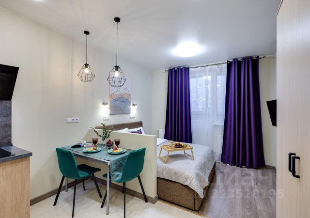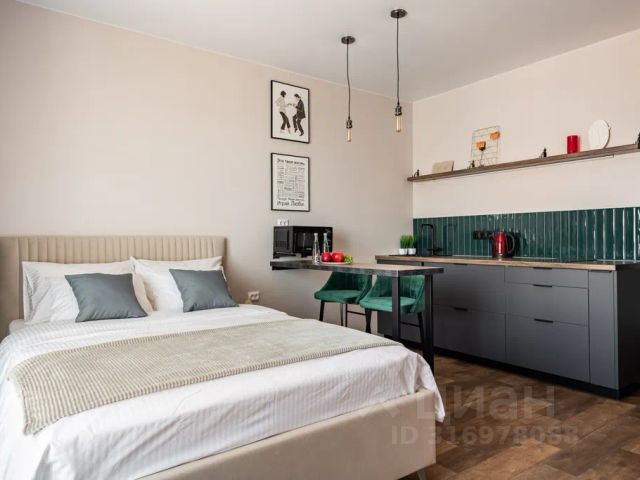 Современные апартаменты-студия с балконом для уютных вечеров, выполнена в стильных и теплых тонах. Идеальный вариант для пары или самостоятельного проживания, где каждая деталь создана для комфорта и уюта.