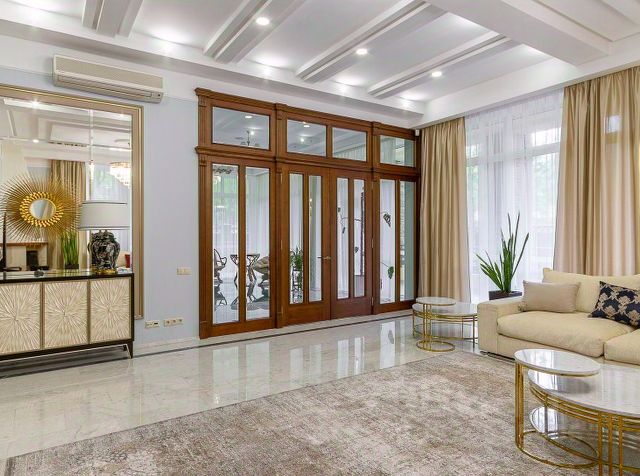 Номер объекта: 022698. В аренду предлагается дом на Рублево-Успенском шоссе, в 7 км. от МКАД, в коттеджном поселке Лес ДСК (Яблоневый сад). Дом 3-х уровневый, кирпичный, площадью 680 м.кв., участок - 15 сот. Есть отдельностоящий гараж (2 м/м). Все коммуникации центральные. В цоколе: помещение бассейна 125кв.м., бассейновая чаша 14 метров с противотоком и гейзером, сауна, с/у, душевая, комната отдыха, кинозал, прачечна, хоз блок. На первом этаже: прихожая, кухня, столовая, гостиная с камином, кабинет, с/у, гардеробная, зимний сад. На втором этаже: мастер-спальня с с/у и гардеробной комнатой, две спальни, с/у с ванной. На третьем этаже: холл с 2-мя встроенными шкафами, кабинет, спальня,с/у, библиотека. На участке: гараж с квартирой для персонала. TWEED Недвижимость - участник ассоциации AREA. Сдам дом на длительный срок в саде КИЗ Яблоневый в поселке Барвиха.