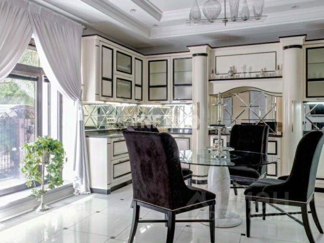 В отделке использованы высококачественные и натуральные материалы. Интерьеры полностью укомплектованы мебелью и техникой. Функциональная планировка делит пространство на несколько зон — основная, спальная, гостевая. Для встреч в кругу семьи или друзей спроектированы спа-зона с бассейном, хаммамом и сауной, кинотеатр, чайная комната, бильярдная с баром и просторные террасы с местом для мангала. Для дополнительного комфорта коттедж оснащён системой "умный дом".
