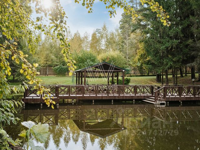 На участке реализован ландшафтный дизайн с фонтаном, зоной отдыха на пруду с мангалом, камином и детской площадкой. На территории построены гостевой дом с кухней, спальней и кабинетом, отдельно стоящий домик для охраны, а также парковочная площадка вместимостью до пятнадцати машин. В стоимость аренды включены услуги управляющего, садовника и охранника.