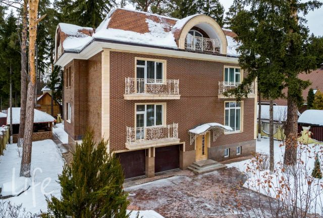 Дом 767 кв.м. построен из качественного кирпича с монолитными перекрытиями и толщиной стен 45 см, выполнен в неоклассическом стиле с элементами европейской загородной архитектуры. Фасад облицован клинкерным кирпичом. 3 этажа: планировка включает бильярдную, кабинет (высота потолка 4 метра), 4 спальни (площадь более 23 м²) с индивидуальными ванными комнатами и гардеробными + комната свободного назначения с возможностью организации гостевой спальни. Винтовая монолитная лестница с отделкой из гранита. Просторная гостиная 90 м² с действующим дровяным камином. Паркет из ценных пород дерева. Дуб, ясень, красное дерево. На 1 этаже сделана чаща под бассейн (83,5 метра), все коммуникации подведены, есть место для русской и финской бани (все выводы и коммуникации готовы). На данный момент помещение (52 м²) используется как комната свободного назначения. Мансарда 100 м² подходит для обустройства мастер этажа, спортзала, детской игровой. Участок 16 соток правильной формы. Находится в тихой части поселка. Видеонаблюдение. Ландшафтный дизайн: ровный газон, каменные дорожки, ухоженные деревья, плодоносящие деревья, автополив. Участок не просматривается со стороны соседей. Зона барбекю. Вольер для собак.