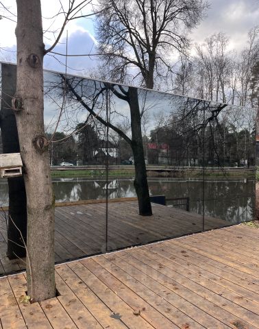 Лот 18715. Дом под ключ 650 кв.м. на участке 25.00 соток. Количество спален: 4. Коттеджный посёлок "Хвойный", Минское шоссе, 11 км от МКАД. Участок правильной прямоугольной формы, окружённый лесными деревьями, предлагает гармоничный ландшафтный дизайн. Ухоженный газон, величественные сосны, ночное освещение и система автоматического полива создают атмосферу уюта и комфорта. Пешеходные дорожки, выложенные натуральным камнем, ведут к площадке, рассчитанной на пять автомобилей, вымощенной гранитной брусчаткой. На территории также находится гаражно-хозяйственный блок с квартирой для персонала, гаражом на два автомобиля и бойлерной, в которой установлен котел VIESSMANN. Коттеджный поселок "Грибово" расположен на Минском шоссе, в 14 км от МКАД. Дом в стиле хай-тек полностью готов к заселению, уже обставлен мебелью. При строительстве и отделке использовались только высококачественные материалы и современные технологии. Интерьер оформлен в современном стиле, в мягких постельных тонах. Большие панорамные окна визуально расширяют пространство и создают ощущение единения с природой. Планировка дома удобна для проживания: четыре спальни, зона гостиной и СПА-зона с бассейном. В доме предусмотрены все центральные коммуникации, а также установлены системы водоподготовки, канального кондиционирования жилых помещений (GENERAL FUJITSU), централизованно приточной вентиляции, охранной и пожарной сигнализации. Поселок находится под надежной охраной, на его территории есть детские и спортивные площадки, а также озеро с пляжем. Инфраструктура района хорошо развита. Планировка дома: 1 этаж: прихожая, холл, гардеробная, с/у, гостиная, кухня-столовая, гостевая комната (кабинет) с гардеробной и с/у, постирочная, спа-зона, в т.ч. плавательный бассейн переливного типа с зоной отдыха сауной и выходом на участок, две летние террасы. 2 этаж: холл, 3 спальни с гардеробными и с/у, библиотека, бильярдная.