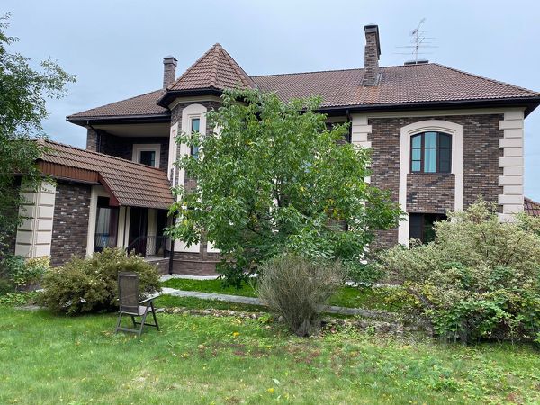 Фасад выполнен в классическом европейском стиле с отделкой под кирпич и черепичной крышей. Уютное крыльцо, ухоженный участок с террасой, газоном и живой изгородью из туй. Просторная парковка на 3 машины. Задний двор с мебелью для отдыха и запасным выходом. Внутри поселка — тихие улицы с освещением и видеонаблюдением.