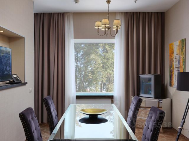 Отель в самом центре города, рядом с Администрацией округа и городским парком. Расстояние до центра Москвы составляет 30 км, аэропорт Внуково расположен в 15 км. В отеле 122 комфортабельных номера категорий Стандарт, Полулюкс, Студия, Апартаменты и Люксы. В каждом номере удобная кровать с ортопедическим матрасом, телевизор, кондиционер, сейф, рабочая зона, чайная станция, гладильные принадлежности. В собственной ванной комнате предоставляются косметические средства. В апартаментах обустроена мини-кухня с микроволновой печью и набором посуды. В отеле работает ресторан "Лерой", где подают блюда американской и европейской кухни. Каждое утро в ресторане для гостей сервируют завтрак по системе "шведский стол". Летом на третьем этаже отеля работает терраса. Для организации бизнес-мероприятий, семинаров и презентаций доступны 4 оборудованных конференц-зала. Наш отель находится неподалеку от Москвы и международного аэропорта Внуково. Инновационный центр Сколково находится всего в 20 минутах езды. Вы сможете с легкостью добраться до центра Москвы с его насыщенной культурной жизнью (всего в 30 километрах) на автомобиле или общественном транспорте: автобусная остановка находится прямо рядом с отелем, а железнодорожная станция - в 10 минутах ходьбы. Вам наверняка понравятся расположенные рядом достопримечательности, такие как тематический военный парк с аттракционами "Патриот", старинный музей-усадьба "Архангельское", концертный зал "Барвиха Luxury Village" и выставочный центр и концертный зал "Крокус Сити Холл". "Люкс с панорамным видом" представлен в единственном экземпляре, он находится на девятом этаже, соседствуя только лишь с номером категории "Люкс с одной спальней". Номер располагает к приятному отдыху в атмосфере роскоши и уюта. В номере есть камин, перед которым приятно расположиться в кресле и забыть о суете и делах. Сдается комната на месяц в Одинцово.