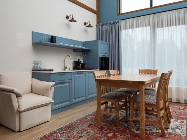 Парк-отель "Бридж Кантри" расположен всего в 50 км от Москвы, в одном из красивейших уголков Подмосковья, в окрестностях Звенигорода. "Бридж Кантри" располагает 96 дизайнерскими номерами и 27 уютными домами, интерьеры которых созданы с опорой на современные эргономичные решения и фокусом на уют и приватность — минимум визуального шума, максимум ощущения свободы, комфорта и умиротворения. Бридж Кантри предлагает своим гостям особенный гастрономический опыт, включающий ресторан с авторской интерпретацией русской и европейской кухни, ужины на террасах с видом на лесной горизонт и закатное небо, а также Винную гостиную с коллекцией премиальных сыров с семейного производства и вин из домашней винодельни. У гостей парк-отеля есть уникальная возможность посетить единственную в Московской области Улиточную ферму с гастробаром, вдохновленным необычной фермерской традицией. Семей с маленькими путешественниками ждет множество занятий и увлекательных развлечений в Школе исследователей с различными игровыми пространствами и мастерскими. Этот дом — идеальное пространство для отдыха, где уютный интерьер гармонично сочетается с просторной террасой и подогреваемой купелью под открытым небом. Двухэтажный дом включает две комфортабельные спальни с индивидуальными ванными комнатами и просторную гостиную с кухонной зоной. Дровяная купель с подогревом превращает обычный вечер в настоящий спа-ритуал. В распоряжении гостей — кровати на выбор с анатомическими матрасами, а также меню подушек для индивидуального комфорта. Для приятного начала дня или уютного вечера в номере есть всё необходимое для приготовления чая и кофе.