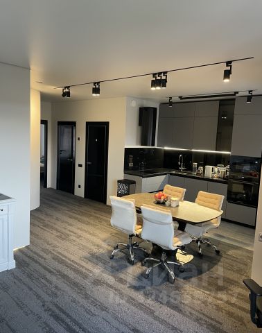 • Кухня: Современный кухонный гарнитур, обеденный стол со стульями.