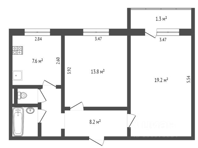 От года, комм. платежи включены (без счётчиков), комиссия 60%, залог 50 000 ₽
