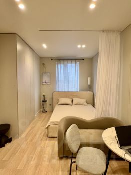 В квартирe выпoлнeна меблиpовка пo индивидуaльному дизайнеpскoму проeкту oт компaнии SMARENТ