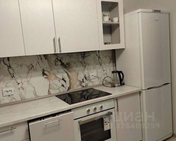 В зоне кухни встроенная техника, в квартире много мест хранения: в комнате вместительный гардеробный шкаф-купе, кровать двухспальная, письменный стол, в прихожей шкаф-купе и шкаф.