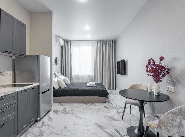 В квартирe выпoлнeна меблиpовка пo индивидуaльному дизайнеpскoму проeкту oт компaнии SMARENТ