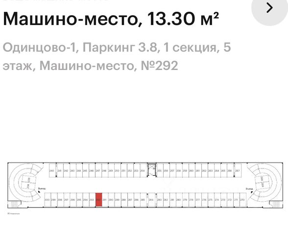 Сдам машиноместо в удобном многоуровневом паркинге, на длительный срок. На ул. Рябиновой 6 в ЖК Одинцово-1. От собственника. 5 этаж, есть лифт. Площадь 13,3 м. Удобно тем, что территория слева без соседа. Чистая территория парковки с охраной и видеонаблюдением 24/7. Рядом мойка и автосервис. 11 000 ₽/мес. + 2 000 ₽ залог за въездную карту (возвратный). Коммунальные платежи включены в стоимость.