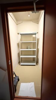Она расположена в доме 21. В кладовке есть стеллаж, кронштейны на потолке для вещей на вешалках. Есть вентиляция, стремянка, вешалка и крючки для удобства.