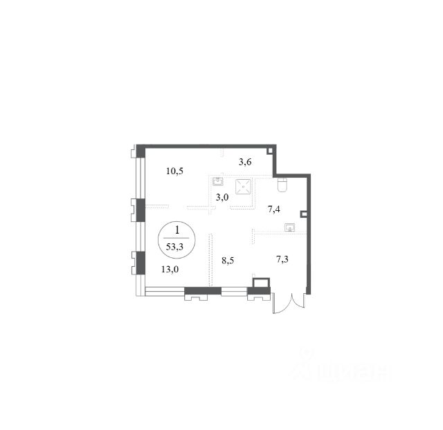 Можно разбить на два помещения(73м2и 43м2,см.схему).