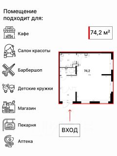 Сдается помещение свободного назначения от собственника: 74.20 кв.м. в жилом квартале "Ильинские Луга".