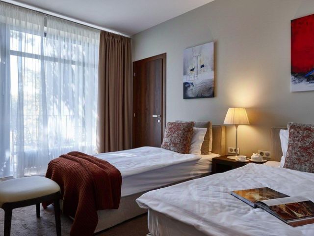 Загородный отель "Величъ Country Club" расположен в 2,5 км от центра Звенигорода и 62 км от Москвы по Новорижскому шоссе. Номера расположены в 4 отдельных зданиях. Все номера оформлены в современном стиле и оснащены кондиционером. В числе прочих удобств — пол с подогревом, телевизор с плоским экраном, мини-бар и балкон. Собственная ванная комната укомплектована тапочками и халатами. В двух ресторанах отеля "Величъ" подают блюда русской и европейской кухни, а также завтрак по меню. В баре гостям предложат коктейли. Помимо этого, в отеле работает летнее кафе с террасой на крыше. Осуществляется доставка еды и напитков в номер. Гости отеля могут поиграть в бильярд, боулинг и большой теннис, позаниматься в тренажерном зале или искупаться в крытом бассейне (в главном здании). Для детей созданы особые условия: просторная детская игровая комната с панорамным остеклением, специальные программы для детского спорта и отдельный безопасный бассейн с особым температурным режимом. На открытом воздухе полностью оборудованы две площадки, есть небольшое футбольное поле, в зимнее время работает каток. На территории работает большой спа-центр с аквазоной, зоной релаксации и салоном красоты. Широкий спектр спа-процедур самого последнего технического уровня с внедрением новейших и уникальных для России технологий релаксации. Для гостей на автомобиле на территории отеля обустроена бесплатная частная парковка. Номера Grand deluxe Velich расположены в корпусах А и B, на четвертом этаже, их площадь — от 100 кв.м. В кухне-гостиной есть диван, обеденный стол, выход на просторную террасу, в спальне установлена двухместная кровать, есть лоджия. Ванная отапливается теплым полом с возможностью регулировки температуры, в ней есть биде и душевая кабина, фен. В прихожей установлен шкаф и зеркало. В номере может разместиться до 4 постояльцев. Внутреннее оснащение: "умное" освещение; рабочее место; шторы с автоматическим управлением.