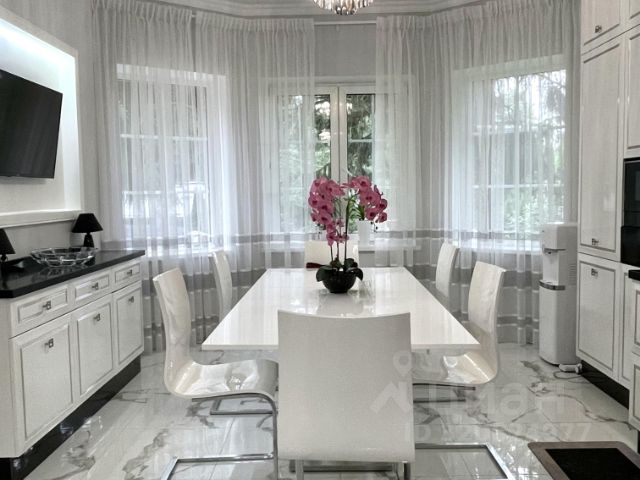 Дом 767 кв.м. построен из качественного кирпича с монолитными перекрытиями и толщиной стен 45 см, выполнен в неоклассическом стиле с элементами европейской загородной архитектуры. Фасад облицован клинкерным кирпичом. 3 этажа: планировка включает бильярдную, кабинет (высота потолка 4 метра), 4 спальни (площадь более 23 м²) с индивидуальными ванными комнатами и гардеробными + комната свободного назначения с возможностью организации гостевой спальни. Винтовая монолитная лестница с отделкой из гранита. Просторная гостиная 90 м² с действующим дровяным камином. Паркет из ценных пород дерева. Дуб, ясень, красное дерево. На 1 этаже сделана чаща под бассейн (83,5 метра), все коммуникации подведены, есть место для русской и финской бани (все выводы и коммуникации готовы). На данный момент помещение (52 м²) используется как комната свободного назначения. Мансарда 100 м² подходит для обустройства мастер этажа, спортзала, детской игровой. Участок 16 соток правильной формы. Находится в тихой части поселка. Видеонаблюдение. Ландшафтный дизайн: ровный газон, каменные дорожки, ухоженные деревья, плодоносящие деревья, автополив. Участок не просматривается со стороны соседей. Зона барбекю. Вольер для собак.