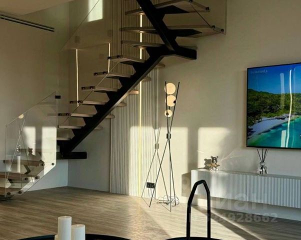 Огромная светлая гостиная с панорамными окнами и двойным светом, с великолепным видом на участок, полностью укомплектована всей необходимой техникой и мебелью: