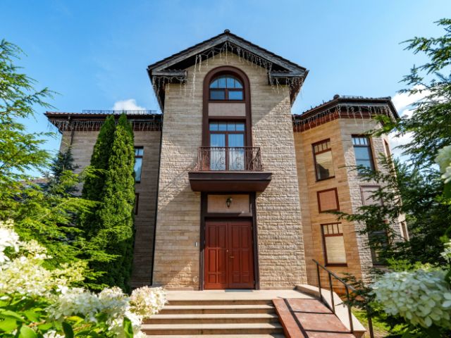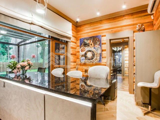 ID 21477 Оксана В аренду предлагается великолепный особняк 1 400 кв.м находится в строго охраняемом лесном поселке в 15 км от Москвы. В отделке использованы дорогие, качественные материалы. Интерьеры дома выполнены в современном классическом стиле и продуманы до мелочей: в доме есть кинотеатр, бильярд, бассейн с морской водой, сауна и многое другое. На ухоженном лесном участке расположены: домик для охраны, дом для персонала (150 кв.м.), гараж на 4 м/м, фонтаны и беседки, создающие чарующую атмосферу настоящей загородной усадьбы. Планировка дома: Цоколь: кинотеатр, бильярд, бар, прачечная, гардеробная; 1 этаж: бассейн с морской водой, спа, сауна, кухня, столовая, гостиная с камином и выходом на террасу, гараж на 2 м/м, кабинета, 2 спальни с ванными комнатами; 2 этаж: хозяйская спальня с гардеробной комнатой, спальня со своим с/у и гардеробной, библиотека, кабинет со своим с/у; Мансарда. Особенности: богатая инфраструктура поселка: рестораны, магазины, каток; роскошный участок с ландшафтным дизайном; гармоничные интерьеры.